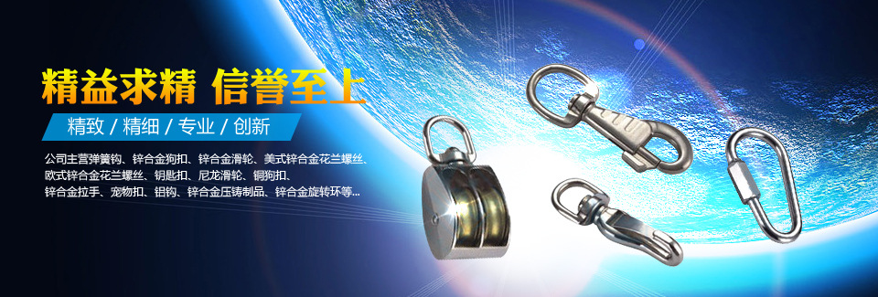 溫州巨旗五金索具有限公司是彈簧鉤、鋅合金狗扣、鋅合金滑輪、美式鋅合金花蘭螺絲、歐式鋅合金花蘭螺絲、鑰匙扣、尼龍滑輪、銅狗扣、鋅合金拉手、寵物扣、鋁鉤、鋅合金壓鑄制品、鋅合金旋轉(zhuǎn)環(huán)、連接環(huán)、圓環(huán)D型環(huán)、登山扣、箱包扣、不銹鋼旋轉(zhuǎn)、不銹鋼制品、五金索具等產(chǎn)品生產(chǎn)加工的有限責(zé)任公司…[查看全文]
